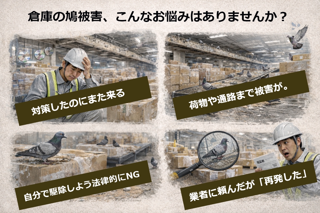 倉庫の鳩被害、こんなお悩みはありませんか?