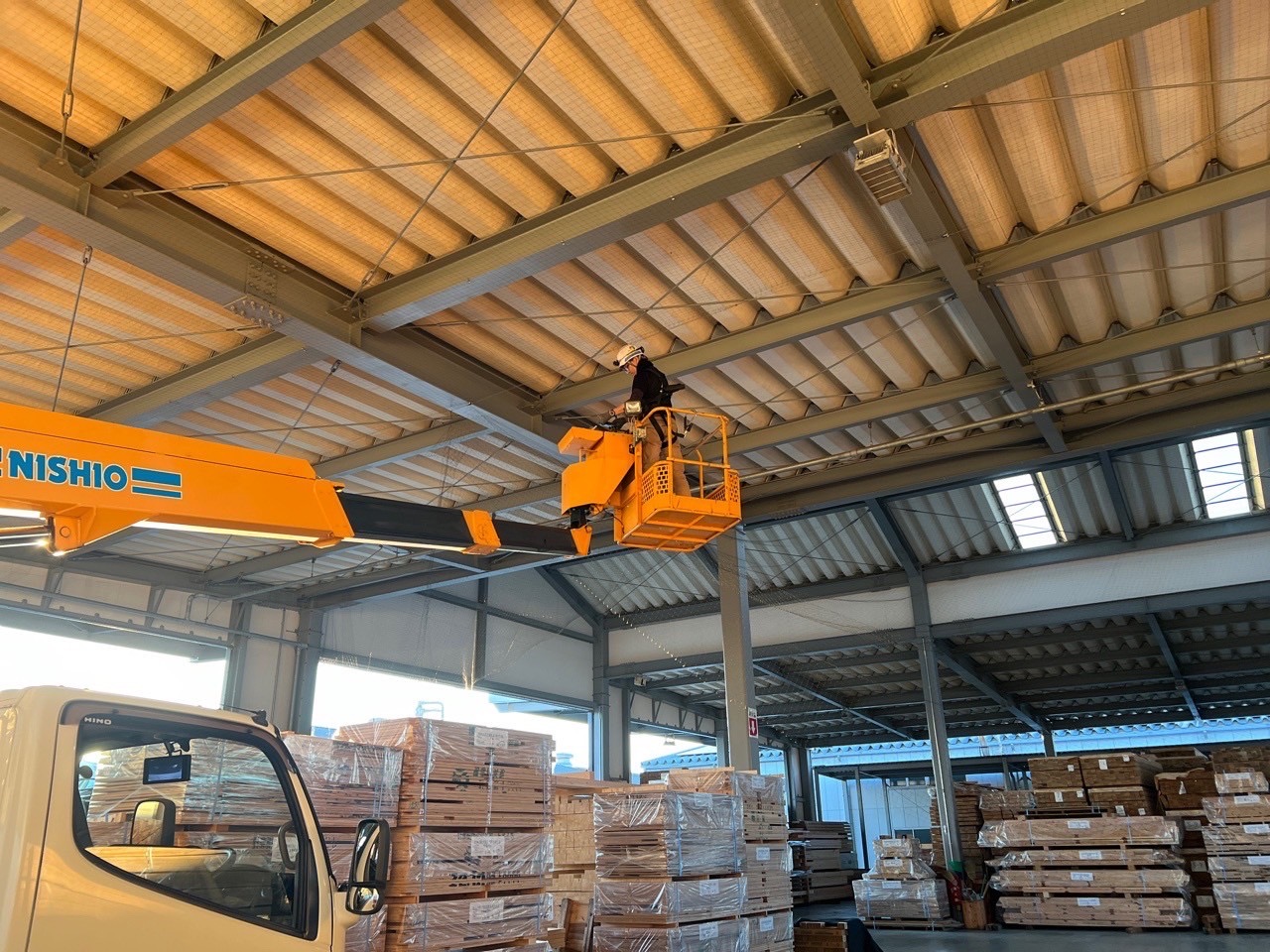 施工事例|倉庫 茨城県鹿嶋市大型倉庫の鳩対策施工事例 天井面全域・屋根上ベンチレ...